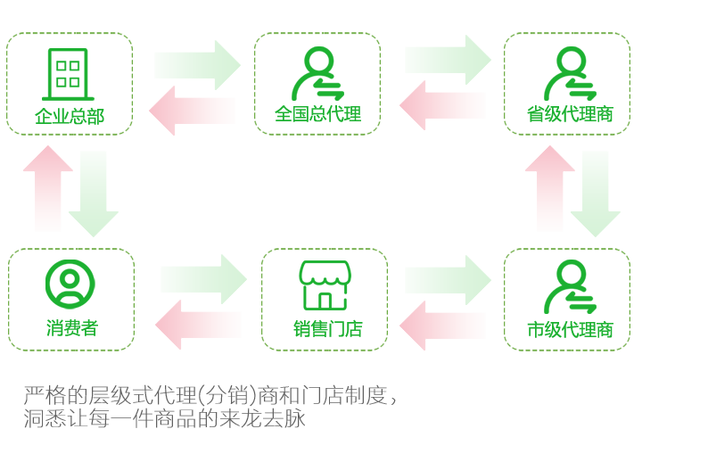 依托代理(经销)商和门店体系,实现闭环式全渠道商品流通管控。